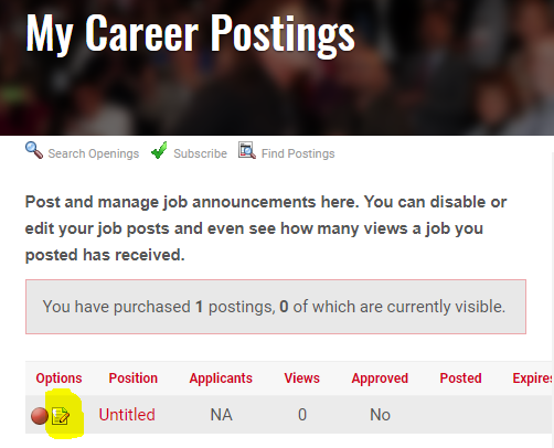 - Your paid invoice includes a truncated link to a web page where you can manage a career posting. Click on the link.